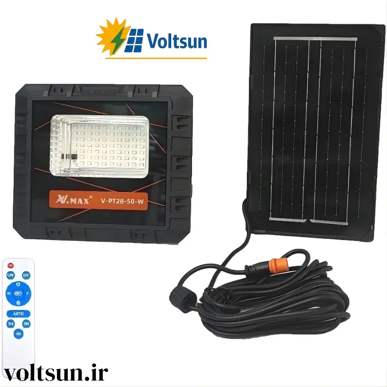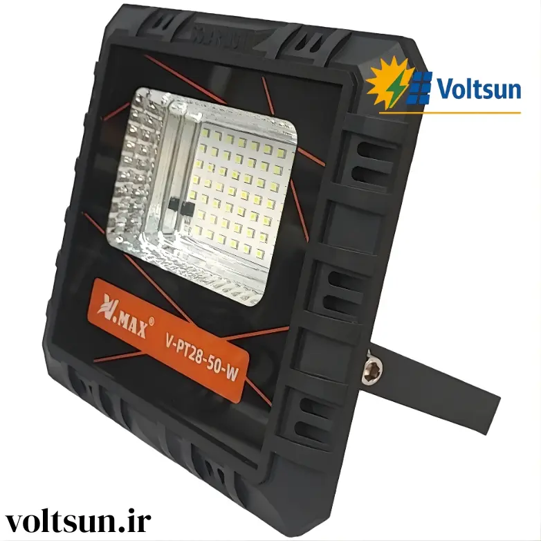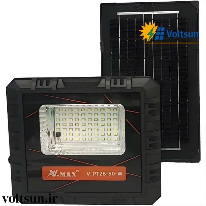 پروژکتور خورشیدی ۵۰ وات V.MAX مدل V-PT28-50-W | روشنایی هوشمند بدون نیاز به برق شهری